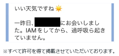 何人もの患者さん方へIAMをご紹介くださっている精神科医の田中先生より、先日メッセージをいただきました。