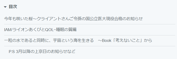 P.S 3月以降の上京日のお知らせなど
