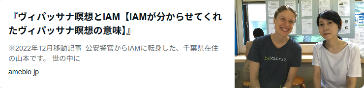 ブッダが悟り体験を得た際の手法もヴィパッサナだったということですが、自分自身、これまで参加してきた様々なWSやリトリートの中で指三本に入る体験の一つがヴィパッサナ瞑想施設で過ごした10日間でした(レポート)。これは、IAM/ライオンあくびを展開してゆく上で大きなサポートになりました。